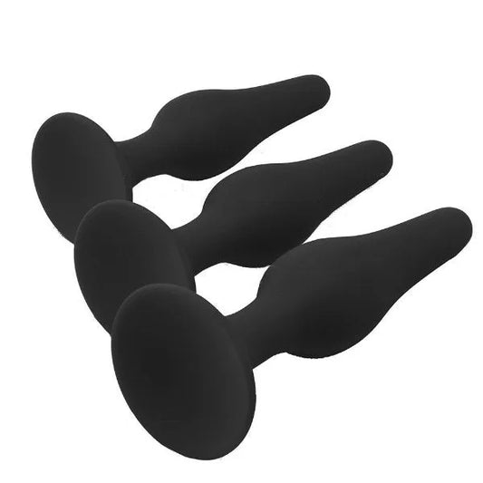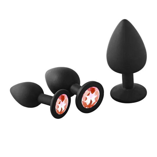 Diamond Shape Solid Silicone Butt Plug Set - Black