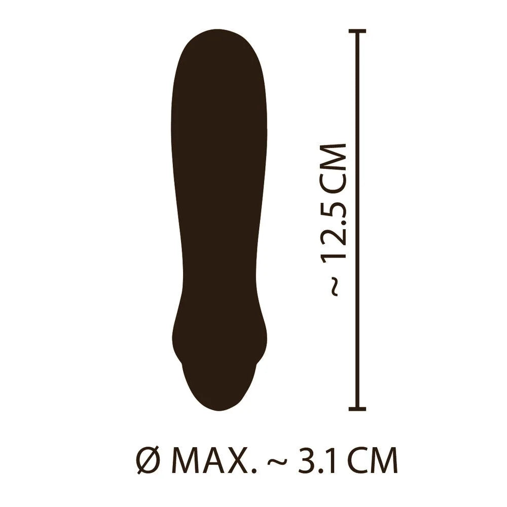 Complete length 12.5 cm, Ø 2.3-3.1 cm, insertion depth 8 cm, weight 71 gr. Silicone, ABS, PU coating.
