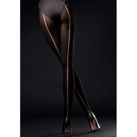 Sensuous, opaque, patterned MF tights with transparent back seam. Made from single-covered elastane yarn for increased durability. Cotton gusset in sizes L
