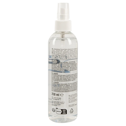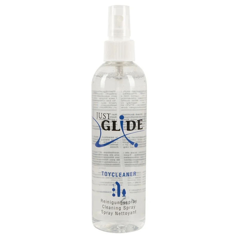 The cleaning spray Toys from Just Glide is perfect for silicone, rubber/latex, PVC and plastic toys. Just spray it on and clean it off again with a clean cloth. Very thick – a few sprays is enough for a great clean. 250 ml.