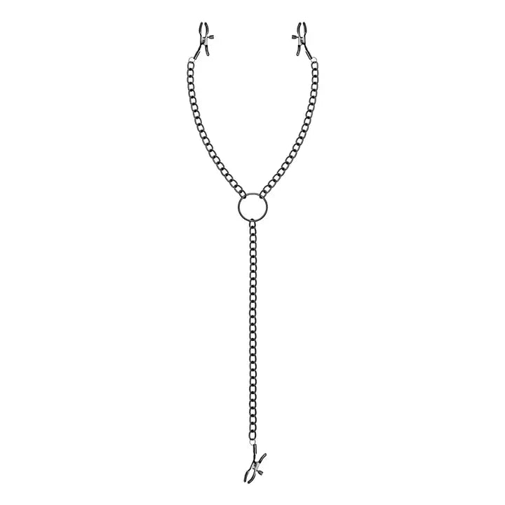 Stimulate your most intimate areas with these exciting nipple and clitoral clamps. This body chain is worn on the nipples and around the clitoris. The nipple clamps have non-slip tips for a good grip and are equipped with a small slider. This allows you to easily adjust the pressure applied to the nipples. Are you ready?