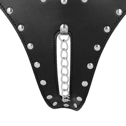 This OUCH! Xtreme PU Leather Chastity Thong with Chain Detail is ideal for indulging in fetish fantasies, BDSM play, or role play, whether at parties or in the bedroom with your partner.