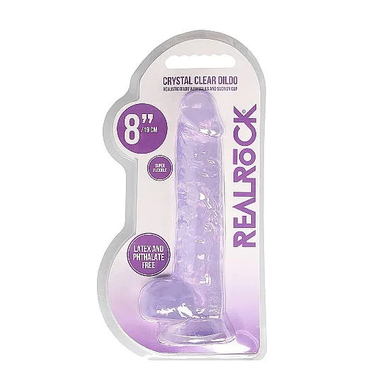 This REALROCK CRYSTAL CLEAR model has been designed with realistic balls for an enhanced lifelike experience. All come with a sturdy suction cup so you can stick it to practically any smooth surface. All REALROCK CRYSTAL CLEAR are phthalate-free, latex-free, body-safe and non-porous which makes them easy-to-clean and gives them a longer lasting durability. This model with balls stands 21 cm (8.3") tall including the suction cup, has an insertable length of 16 cm (6.3") and has a girth of 4 cm (1.6").