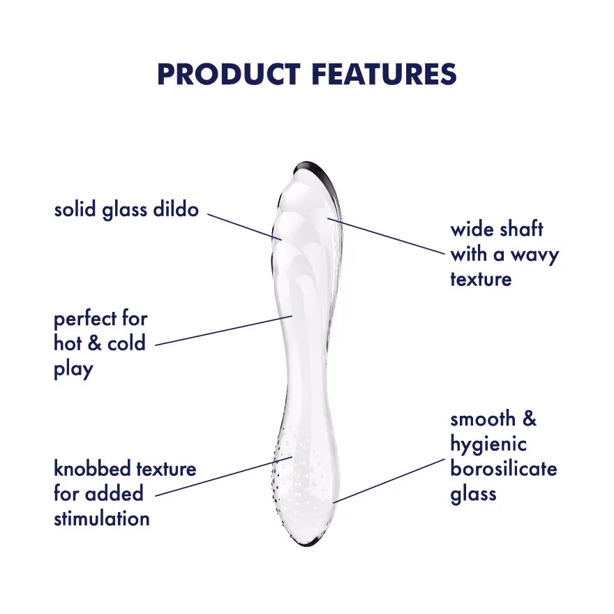 Indulge in pure luxury and ultimate pleasure with the Satisfyer Dazzling Crystal 1, a high-quality glass dildo that will charm you and your hotspots with its design and remarkable features. With its two exciting surface textures, it is here to give you intense vaginal pleasure and hot G-spot stimulation – a beautiful gem that will leave you completely bedazzled!