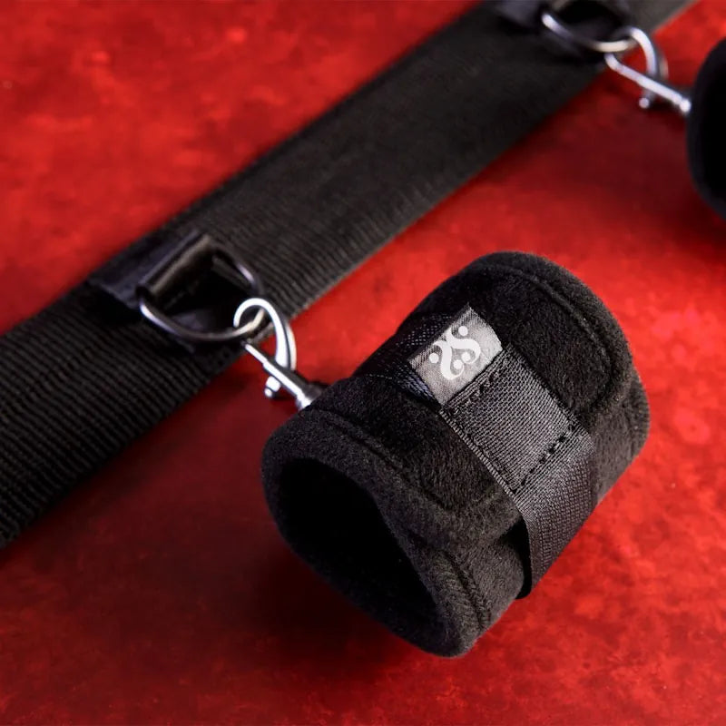 - Soft padded, adjustable velvet cuffs for wrist and ankle restraint
