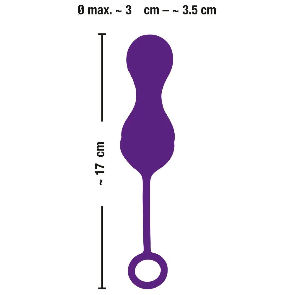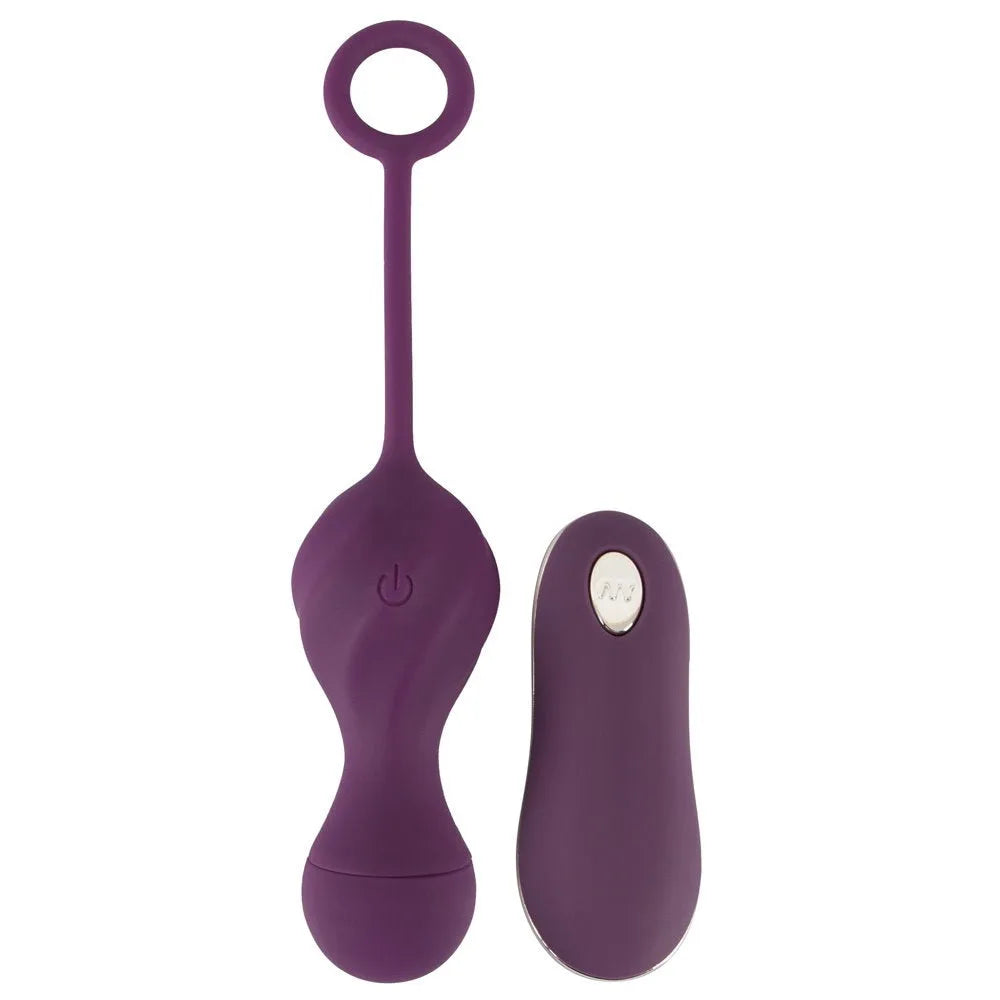 Rechargeable vibro-ball duo with a stimulating texture and stretchy retrieval strap. The powerful but quiet motor has 10 different vibration modes which are great for exciting variety during training and pleasure – everything can be easily controlled at the push of a button on the remote control. The remote control has a range of 5 metres which means that a partner can use it as well! The vitro-balls weigh 73 g and are therefore perfect for effective pelvic floor muscle training. The Love Balls are covered in soft silicone material which feels great against the skin during pleasure/training. Includes a USB cable and a battery (23A) for the remote control.