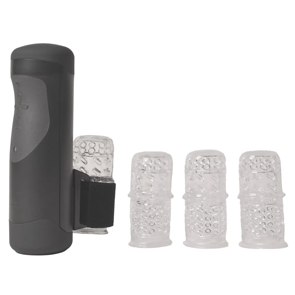 The mains-powered masturbator The Handy Interactive Stroker has a dotted sleeve that can be attached to the masturbator by the TrueGrip band. The diameter of the extremely flexible sleeve can be adjusted for an even more intense feeling. Furthermore, the Handy can be used with a favourite sleeve.